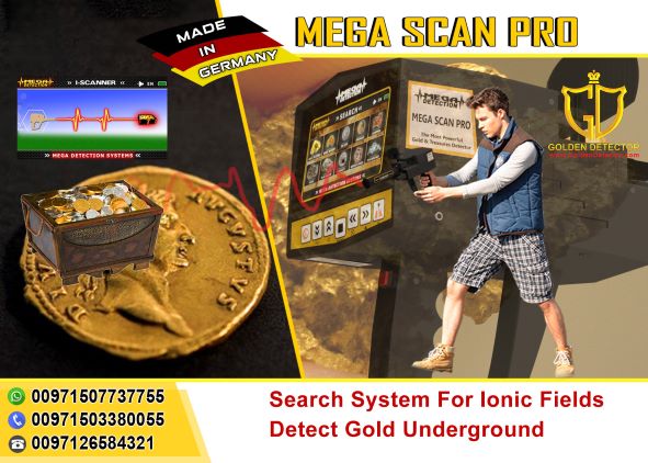 - Mega Scan Pro by Mega Locators This professional device can search in 3 systems. The long-range sensor system, ionic scan system, and Magnetometer system. Up to 2000 meters in long-range and 40 meters depths underground. With 5 years warranty and made in Germany. Can search in 10 programs: Gold treasure, gold nuggets, silver, copper, bronze, iron, platinum, diamond, gemstones, caves and spaces. You can visit my showroom in Abu Dhabi in the tourist club area. Free shipping worldwide Free training For more information please contact me on WhatsApp +971507737755 or +971503380055 or info@GoldenDetector.com