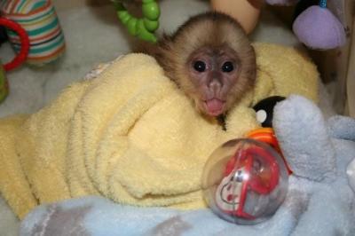 - Adorable white face baby capuchin monkey for adoption Please if you are really interested in adopting this lovely baby monkey mail me now asap contact me if you are interested in this lovely female baby monkey which i and my family will be giving out for adoption . she is very kind and also very palyful with kids and other pets.i will hoping to read from you as soon as possible if you will be wanting this monkey.