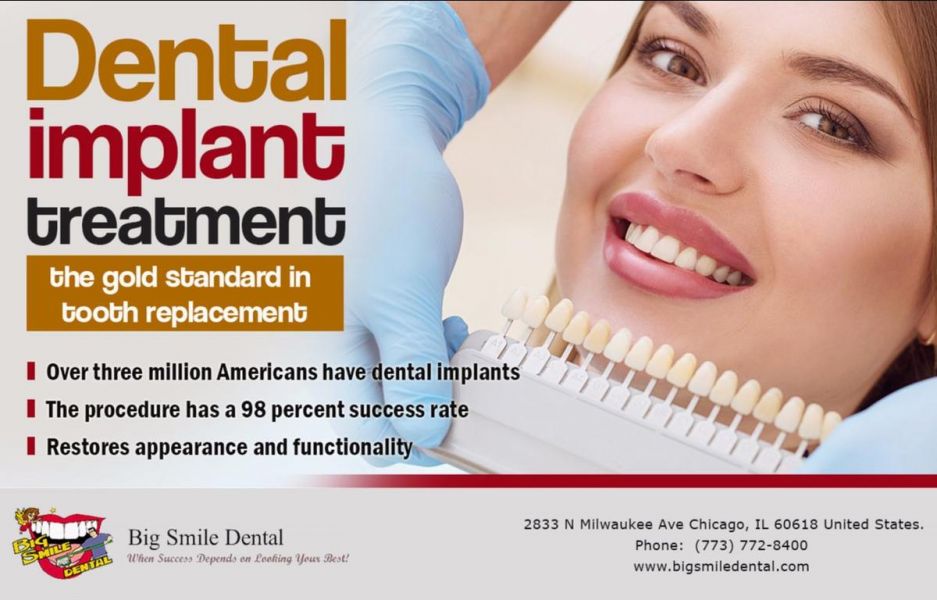 - Affordable customized Dental Implants for Tooth Replacement by Dentist Dr. Theodore M. Siegel at Big Smile Dental Chicago in Chicago, IL. Call 773-772-8400 ------------------------ Contact Us ------------------------ Big Smile Dental, 2833 N Milwaukee Ave, Chicago, IL 60618 TP - 773-772-8400 ------------------------ Office Hours ------------------------ Monday: 9:30 AM - 6:00 PM Tuesday: 9:30 AM - 6:00 PM Wednesday: 9:30 AM - 6:00 PM Thursday: 9:30 AM - 4:00 PM Friday: 9:00 AM - 2:00 PM Saturday: 9:30 AM - 6:00 PM ------------------------ Website - http://www.bigsmiledental.com/dental-implants/index.html Facebook - http://www.facebook.com/bigsmiledental Twitter - https://twitter.com/dentistchicago Google+ - https://plus.google.com/+BigSmileDentalChicago/about?gl=lk&hl=en