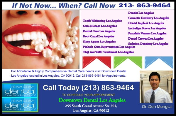 - For Affordable & Highly Comprehensive Dental Care needs visit Downtown Dental Los Angeles located in Los Angeles, CA 90012. Call 213-863-9464 for Appointments. Dr. Don Mungcal Call Us -: 213-863-9464 Office Location : 255 South Grand Avenue Ste 204, Los Angeles, CA 90012