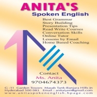 - Master English Skills—Anita’s English Skills 1. Feel Embarrassed ? Make a lot of Grammar Mistakes ? Don’t Worry 2. Have Trouble Understanding English? Speak Confidently 3. Feel Frustrated You Cant Understand Other’s English Accent? Learn Now. 4. U Read Well But When It’s Time To Speak You Feel Foolish & Nervous? Overcome it 5. Angry After All These Years You Cannot Speak English? Join Anita’s Speak English Program 6. Learn the Secret 7 Rules -Imagine thinking, smiling, and laughing while learning. Listen & Answer Mini-Stories, Rapid fire Questions & Much More. You can do it! It is possible for anyone to speak excellent English with Ms.Anita Coach & Mentor. Book now and Benefit from Christmas Bonus Package . Prices ONLY4December Rs.500 Contact: anitaiyen@gmail.com or Call # 09704674373 MAsab Tank Hyderabad India Visit www.anitaspokenenglish.hpage.com
