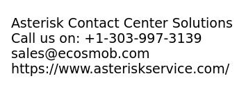 - Happy Customer can Bring more business than any other things. Keep Your Customer happy with Asterisk Contact Center Solution that provides extra features with the latest functionality. Give more satisfaction with Asterisk Contact Center Solution that Provides robust and streamlining workflow processes.Our Contact Center Speed up your profitability and time and keep touch with the Cloud technology. Features: -Advanced call distribution -Manual dialer -Extension Support -Multilevel Interactive Voice Response System -Conferencing -Call log and report For More information, Call: +1-303-997-3139 sales@ecosmob.com https://www.asteriskservice.com/