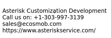 - AsteriskService.com offers you to make simple to advanced features to create different open source software using Asterisk open source technology. We served hundreds of clients with our Customized Asterisk Software and we are happy to highest customer satisfaction ratio. Asterisk Service: -Customize development -Customization in Existing System -Dialplan Programming -AGI Scripting -Configuration -Support For More information, Call: +1-303-997-3139 sales@ecosmob.com https://www.asteriskservice.com/