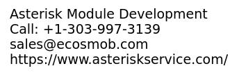 - Asterisk is open source technology that gives you such advanced features and functionality easily. AsteriskService.com offers to create Asterisk Module Development in your budget with your customized requirements. Asterisk is free technology that gives you robust and reliable performance. We have experienced and most talented team that understand client requirements. Asterisk Service: -Customize development -Customization in the Existing System -Dialplan Programming -AGI Scripting -Configuration -Support For More information, Call: +1-303-997-3139 sales@ecosmob.com https://www.asteriskservice.com/