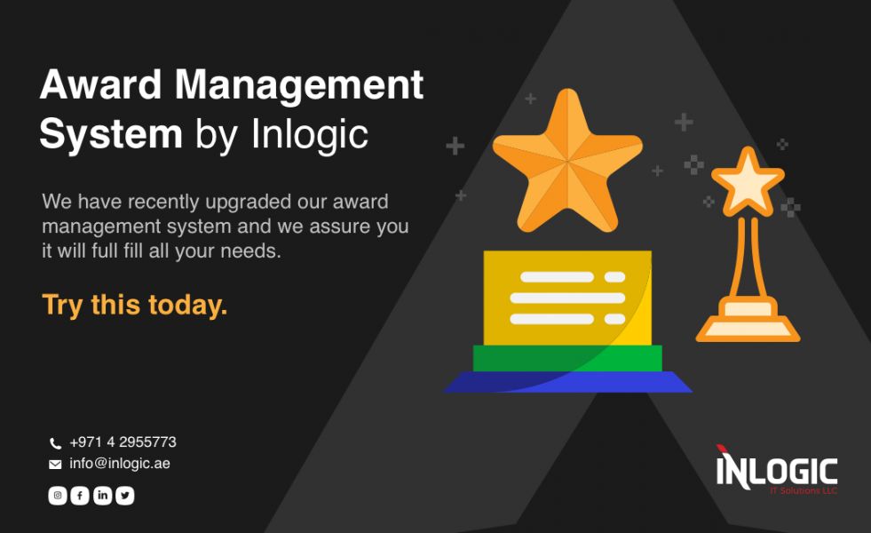- Award Management System. An innovative solution designed to enable organizations to create and manage any type of Awards, Competitions and more programs in few clicks making the lifecycle of the whole award automated and easier for the entrants, judges and awards committee. Request a FREE DEMO. https://www.inlogic.ae/products/award-management-system/ | +97142955773 | info@inlogic.ae
