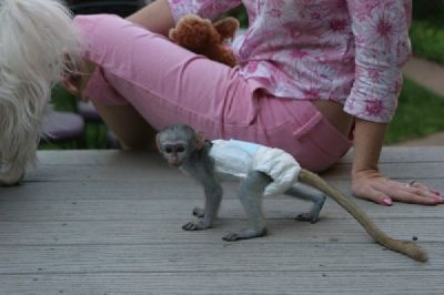 - Hello i have two cute home trained Baby Face Capuchin Monkeys available for adoption.They are both raised in my home and hand fed by me, my wife and son. We spoil and give them the most excellent attention. They are all ready to leave and they are very healthy, diaper trained and tamed and very good eaters.They have been vet checked and will come with a medical record .Pets come with pets' accessories like Blankets, diapers , dresses, toys, starter kits and some monkey baby food stuffs. They would make wonderful companions at your home they are also playful to kids and other house animals for more information's contact us at (revsisteranita@gmail.com)