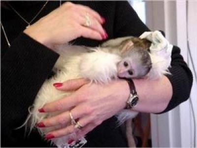- Adorable baby capuchin monkeys ready for good homes.All babies are on the bottle and wearing diapers.Babies come with all paper work including health certificate.Babies are Raised in our home with dogs, cats kits. We have been working with monkeys for over 12 years. All babies come with starter kits including bottles, diapers, formula, baby blankets & toys.Our babies are vet checked and come with a health certificate. Feel free to contact us now if you feel you can give a good home to one of our babies.We will provide you with pictures and references of happy families (monicacynthia1990@gmail.com)