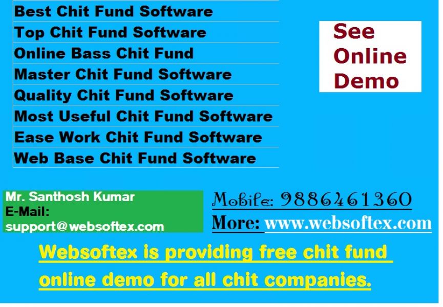 - Chit Fund Company is simplifying things and increases their efficiency. Provide secured online access to it members. Members can see next payment information-amount to be paid along with Loan details etc. It is one of the simplest software dealing with chit fund amount transaction of financial institutes. More http://chitfundsoftware.in