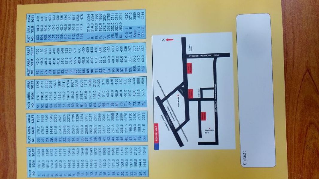 - Just 5 kilometers from Poonamallee to Avadi Road Just 2 kilometers from 400ft Outer Ring Road On Pattabiram Main Road Surrounded by Houses, Schools, Colleges and hospitals Gated Community with 24 hours Security Developed Park and Avenues trees Black Top Road Potable Water Clear Title Ready for Dwelling Bank Loan Arrange Plot Size Minum 430 Sq/ft Price RS 1400 per Sq/Ft For More Details Contact Glory Homes Property Developers Ai- 24, Old No Ai 124 1st Floor, 8th Main Road, Shanthi Colony Anna Nagar, Chennai- 600040 8144499997, 9381842225, 7667442225, Email Id: gloryhomesdinesh@gmail.com