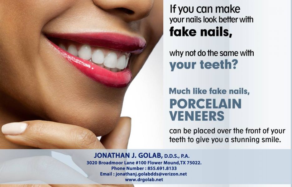- Call 855-691-8133 today to set an appointment to visit highly skilled Dentist Dr. Jonathan Golab at JONATHAN J. GOLAB, D.D.S., PA in Flower Mound, TX Jonathan J. Golab, D.D.S., P.A. 3020 Broadmoor Lane #100 Flower Mound, TX 75022. Phone Number: 855.691.8133 Fax No: 972.691.8269 Email: jonathanj.golabdds@verizon.net Read morehttp://www.drgolab.net/crowns-and-bridges/ Visit us Facebook: https://www.facebook.com/JonathanGolabDDS/timeline Twitter us: https://twitter.com/DrGolabDDS Convenient Hours: Available Monday - Thursday