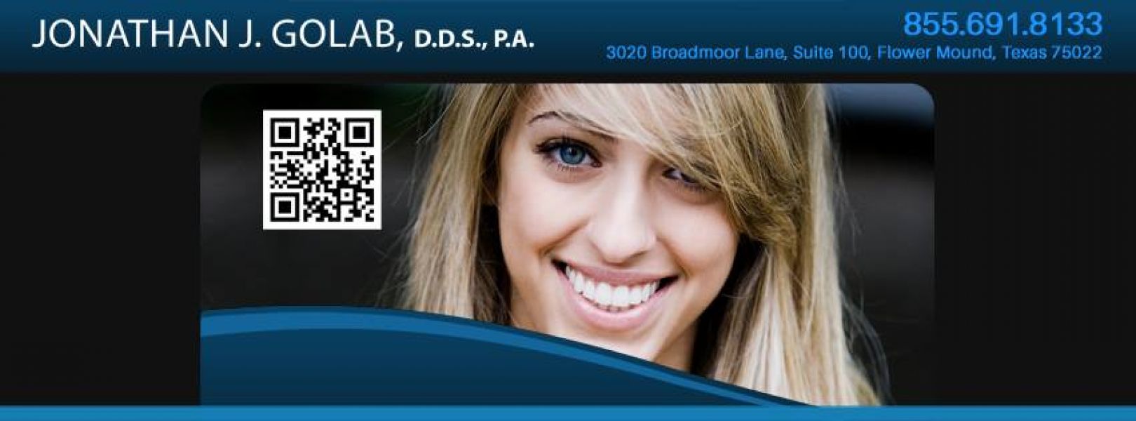 - Call 855-691-8133 today to set an appointment to visit highly skilled Dentist Dr. Jonathan Golab at JONATHAN J. GOLAB, D.D.S., PA in Flower Mound, TX Jonathan J. Golab, D.D.S., P.A. 3020 Broadmoor Lane #100 Flower Mound, TX 75022. Phone Number: 855.691.8133 Fax No: 972.691.8269 Email: jonathanj.golabdds@verizon.net Read more: http://www.drgolab.net/dental-implants/ Visit us Facebook: https://www.facebook.com/JonathanGolabDDS/timeline Twitter us: https://twitter.com/DrGolabDDS Convenient Hours: Available Monday - Thursday
