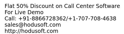 - Festive season begins! In this season, Hodusoft introduced special offers for their clients. Hodusoft gives flat 50% discount on Call Center Software. Call Center Software has latest features and its functionality will grow your Call Center fetch entirely new level in the market. Call Center Software is reliable and holds robust performance for swift communication with the customers. Features: -Predictive Dialer -Auto Dialer -Skill-Based Mapping -WebRTC Phone -Automatic Call Distribution -Real-Time Analytics For Live Demo Call: +91-8866728362/+1-707-708-4638 sales@hodusoft.com http://hodusoft.com