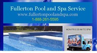 - Thank You for visiting us online. We know you have many pool service companies to choose from. We guarantee your satisfaction and we pride ourselves on our reliability, pride of workmanship and integrity. We offer a variety of services from weekly pool and spa maintenance to pool inspections, all phases of troubleshooting and repair, heater repairs, filter cleanings, portable spa service & repairs, hot tub covers, automation, acid washing, chlorine washing, motors, pumps and much much more! Call us Today at 888-261-5595 Office hours MON-FRI 8:30 AM TO 5PM Our website is www.fullertonpoolandspa.com To email us info@fullertonpoolandspa.com We are now on Facebook come visit us at http://www.facebook.com/pages/Fullerton-Pool-and-Spa-Service-888-261-5595/233810723383280