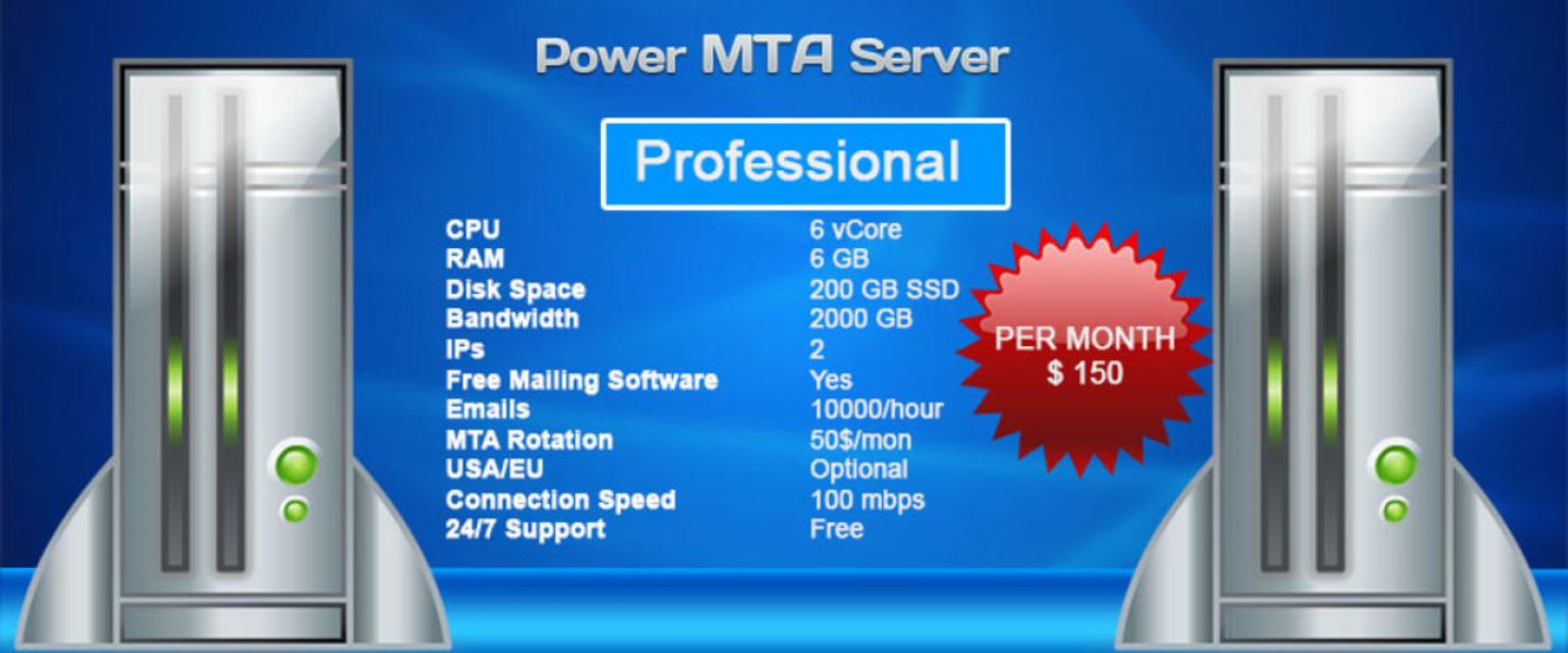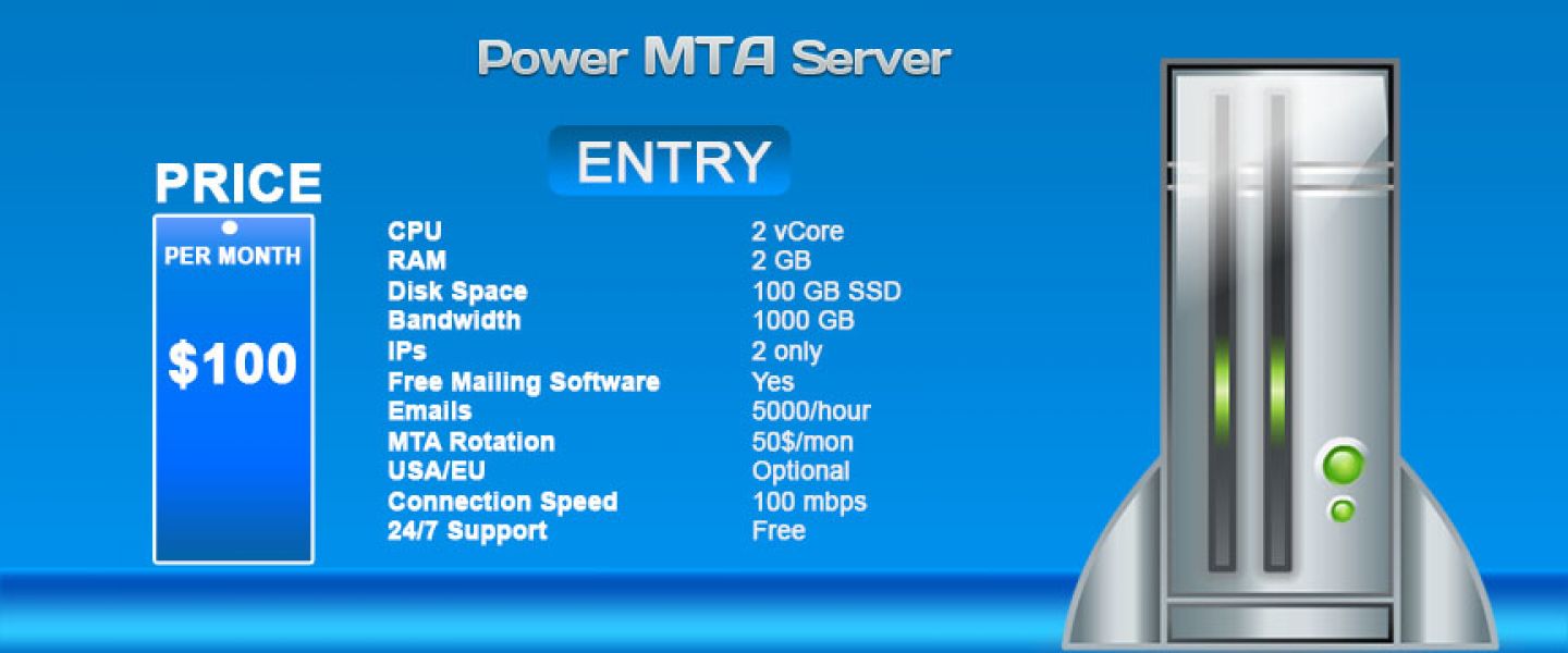 - We offer POWER Full dedicated bulk smtp server which allows you to send millions of emails on daily basis regardless text or html. Each server has dedicated hardware including RAM, cpu , hdd, ips, bandwidth and free mailing software plus free DKIM, SPF, rDNS setup. Our dedicated servers allows to have multiple additional ips so that your mails go nonstop without blockings. Enterprise Disk Space: 100GB Bandwidth: 1000GB IPs: 1 only Free Mailing Software: Yes Emails: 15000/hour DKIM/SPF/rDNS: Yes USA/EU: Optional Connection Speed: 100 mbps 24/7 Support: Free $100/month Order Now http://www.powermtaservers.com/smtp-hosting