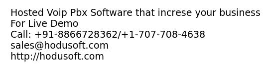 - Installing Hosted VoIP PBX Solution can cut cost and elevate your business communication and telephony fracture. Hosted PBX will provide robust features, high-quality voice calls and most reliable that gives your business more growth. Hodusoft VOIP hosted PBX is easy to use and available in readymade with Latest features and functionality. Features: -DID Management -Gateway Management -Music on hold configuration -Recording -Whitelist / Blacklist -Powerful Reporting For Live Demo Call: +91-8866728362/+1-707-708-4638 sales@hodusoft.com http://hodusoft.com