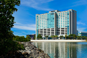 - Westin Tampa Bay's waterfront location offers both incredible bay views and easy access to the area's attractions. Revive your spirit in our soaring 16-story sanctuary with its cascading waterfall and lushly landscaped courtyard, and enjoy the tranquility and grace of our boardwalk. Come stay with us because SERVING YOU IS OUR PLEASURE!
