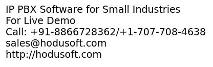 - IP PBX is easy to use and more reliable for small industries. Using IP PBX software we can easily reduce call cost, cable wiring, and maintenance cost. It’s easy to manage and easy to install and configure. HoduPBX Software provides better customer services and productivity. With user-friendly GUI user can easily manage calls. Features: -DID Management -Gateway Management -Music on hold configuration -Recording -Whitelist / Blacklist -Powerful Reporting For Live Demo Call: +91-8866728362/+1-707-708-4638 sales@hodusoft.com http://hodusoft.com