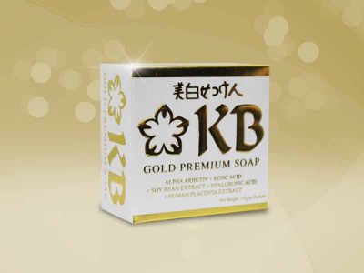 - From the makers of KB GlutaNAC comes, KB GOLD PREMIUM SOAP, the first to incorporate Human Placenta Extract, 99% Alpha Arbutin, Kojic Acid, Soybean Extract, Hyaluronic Acid and Vitamin C Rosehips in one blend. for a fast, safe and effective way to a whiter, smoother, younger looking skin. The use of Human Placenta Extract in KB Gold Premium soap, a first in beauty soap technology, assures a far more effective tyrosinase inhibition and cell revitalization which leads to a fairer and younger looking skin. To further enhance the skin whitening qualities of the human placenta extract, KB Soap also has 99% Alpha Arbutin content (in comparison to a mere less than 10% in other brands) and Kojic Acid. The use of Alpha Arbutin is widely recognized in the cosmetic industry as the fastest and safest way to a whiter complexion while Kojic Acid itself is a powerful skin whitening agent. Studies show that regular topical use of Soybean Exract delays ageing and promotes a smoothe