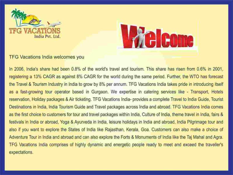 - TFG Vacations India Pvt. Ltd. ISO-9001-2008 (an established & trusted name in tourism industry) invites fresher (only) for Part Time/Full time Home based work everyday. : -a genuine opportunity to earn INR 4-6 thousand week with just 4-5 hours of working online. : -fairly good professional satisfaction is assured as this job create innumerable possibilities for futuristic career growth. : -Act fast, Apply Now as we have only limited vacancies. For more details visit us at http://www.tfgholidays.in or Contact us at TFG Vacations India Pvt. Ltd. Contact Number : 18001213837 (Toll Free)