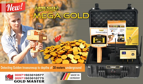 - Discover golden treaures and diamonds with this latest and powerful yet inexpensive device. Is has 100% precision in giving signals for quicker and successful treasure hunting saving you time and effort. It is used to explore all territories and difficult terrains, including mountainous and rocky & muddy area and is not affected by either warm or cool air. MEGA GOLD was designed simple and easy to use to suit all researchers and prospectors. It is equipped with advaced technologies for convinience of use, including: 1. LCD Screen-displays all options and important details you need 2. Laser system-determines the direction of the target 3. Long-lasting battery-up to 20 hrs of continuous use MEGA GOLD detects GOld Treasures, Gold Nuggets, Silver and Diamonds up to distance of 2000m and depth of 30m. Visit our website: http://www.gold-master.com/en/mega-gold-103.aspx User Video: https://www.youtube.com/watch?v=SNjH_269ip8 For inquiry, contact us at +971 50 3010 577 or +971 50 3010 77