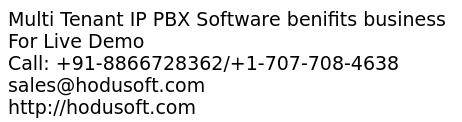 - Today’s world it is impossible to run IT business without VoIP technology.The multi-tenant IP PBX Solution is the ultimate solution that perfect for your business.The Multi-tenant IP PBX solution is a powerful tool which comes with a host of features. Some of the key features are listed below: Features: -DID Management -Gateway Management -Music on hold configuration -Recording -Whitelist / Blacklist -Powerful Reporting For Live Demo Call: +91-8866728362/+1-707-708-4638 sales@hodusoft.com http://hodusoft.com