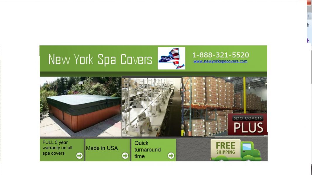 - New York Spa Covers New York Spa Covers Plus is your online source for quality spa covers delivered fast since 1996. Each New York Spa Cover is custom made when you order it and ships in a few days ensuring you a FAST delivery. Our customers want their new spa covers delivered in just 1- 2 weeks, and that is just what we strive to do. When you order your new replacement spa cover from SpaCoversPlus.com, your spa cover is shipped factory-direct to you, no middleman. Our standard cover is 25% more dense than our competition! We offer our spa covers in 14 colors and use only the most durable marine grade 1500 vinyl and the finest materials to construct your new hot tub cover. We can make a spa cover to fit any spa and have over 5,000 spa cover templates in stock. If you need help measuring your spa cover or have questions, give us a call 888-321-5520, we're here to help you! For more information please visit our website at www.newyorkspacovers.com or email us at info@spacoversplus.com Th