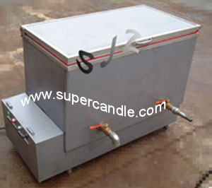 - We supply oil-jacketed wax melters and direct heat ones. The common model holds 150 kg of wax. It is with stainless steel interior, which is not only beautiful, but also easy to be cleaned. It is fully insulated and energy saving. Temperature is controlled by thermostat. The melting temperature can be up to 140 degrees C. Heat-up time is one hour and a half. For continuous operation, the melting time is only 1 hour. For more info on our wax melter, please visit www.supercandle.com for details.