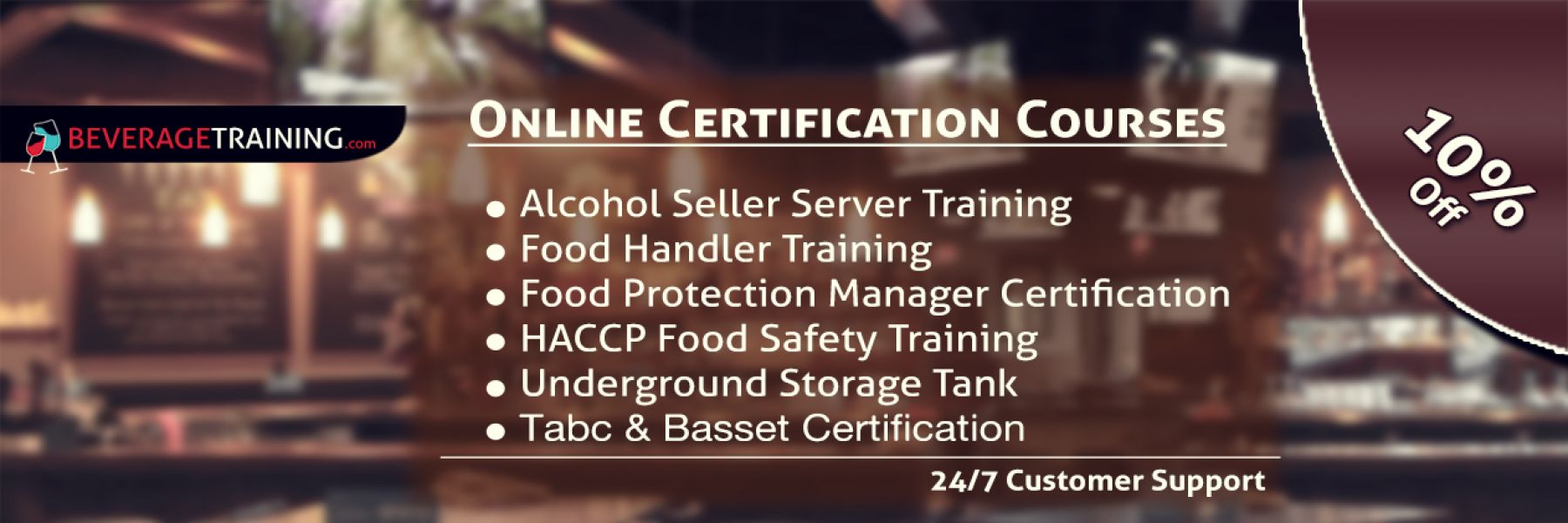 - Depending on the state you live in, there is bound to be at minimum, one state-sponsored certification mandatory for holding job as an Alcohol Server. We offer interactive online training courses that presents relevant, accurate, and helpful information regarding Alcohol Serving. Our courses are individually tailored for certifications requirements of each state. Regardless of it being for Illinois, Nevada, Texas, California, Florida or New York, or any other state. Getting proper certification relevant to your state takes only a few hours at most and is an easy process. The online training course is completely interactive and can be conducted from the comfort of home.