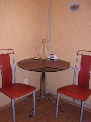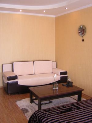 - Very nice clean beautiful comfortable apartment in the very center of Lugansk for daily rent from an owner! Price is $40 US dollars per night. Apartment situated in the very center of Lugansk close to supermarkets, banks, ATMs, the best restaurants, cafes, bars and so on. You can find everything you need in this apartment: Free Internet Access, air-conditioner, gas-furnace with electric lighting, oven, microwave oven, electric kettle, refrigerator, laundry washer, TV with cable television, iron, ironing-board, hair-drier, shower cubicle, hot water all the time, balcony, plates, glasses, pots, towels, bed linen, king-size bed and folding sofa. I also propose meeting and transfer from the airport or railway station! Services of translator, excursions and so on. Support in getting visa to Ukraine! My mobile phone number: +380667668399. Call me any time! Look forward to meet you and propose you the best service! Olga.