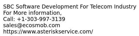 - AsteriskService introduced Session Border Controller (SBC) gives communication service providers economical and reliable means to secure and control media and signaling streams that across the edges of IMS network. SBC software sits at an edge of the access network to secure any type of IP access and delivers all IMS services. AsteriskService provide customized Session Border Controller Software according to your Requirements. Features: -NAT Traversal -Media bridging -Policy-based Call routing -Tracking Call Progress -Eliminate Bad VoIP Signal -Codec transcoding For More information, Call: +1-303-997-3139 sales@ecosmob.com https://www.asteriskservice.com/