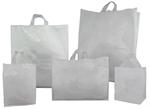 • Soft Loop Natural Frosty Plastic Shoppers with Cardboard Bottoms