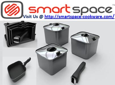 - The SmartSpace square cookware comes in a convenient set of three pots and one universal handle. The single handle can be attached to all three pots. Even if you use all three pots at the same time when cooking three different meals, the handle can be easily reattached to each pan by simply clicking on the handle “ejection” button. more info @ http://smartspace-cookware.com/product-features/