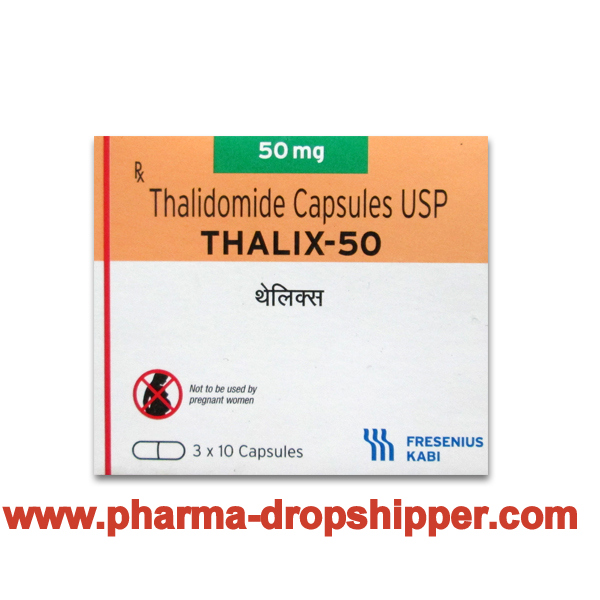 - Thalix 50 mg (Thalidomide Capsules) Thalix 50 mg (Thalidomide Capsules) and belongs to a class of medications called immunomodulatory agents. Thalix 50 mg (Thalidomide Capsules) used to treat multiple myeloma in patients. Thalix 50 mg (Thalidomide Capsules) used in combination or alone for the treatment process of skin inflammation in patients who have severe to moderate erythema nodosum leprosum. Thalix 50 mg (Thalidomide Capsules) ensures to increment the myeloma by enhancing the immune system to lower certain substances that are the reason for skin inflammation like swelling in patients. Thalix 50 mg (Thalidomide Capsules) is used in combination with dexamethasone to treat multiple myeloma in patients who have been newly diagnosed with this disease. Thalix 50 mg (Thalidomide Capsules) is used alone or with other medications for treating and preventing skin inflammation in patients who have moderate to severe erythema nodosum leprosum. Tags: Thalix Capsules Dropshipping, Thalix C