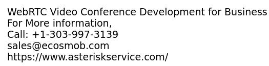 - Web Real-Time Communication (WebRTC) is new software solution that quickly connects clients and businesses. WebRTC is more efficient and cost-effective for the business that gives rich experienced with clients. High-quality audio and video make your conferencing better and beneficial for business. You can quickly add WebRTC with your app or website. We provide customized solution as per your business requirements. Features: -Session Rehydration -Audio & Video Calling -Session Mobility -Screen Sharing -Ease network Change -User Authentication For More information, Call: +1-303-997-3139 sales@ecosmob.com https://www.asteriskservice.com/