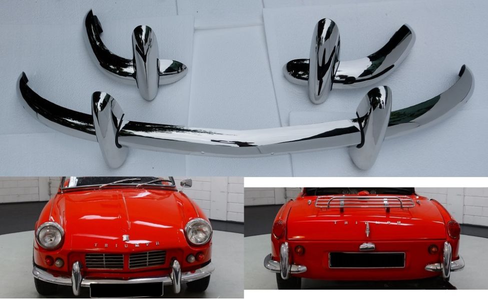Triumph Spitfire MK1, MK2, GT6 MK1 bumpers Triumph Spitfire MK1, MK2, GT6 MK1 (1962-1968) bumpers. One set of 1 front bumper, 2 rear bumpers, 4 overriders, bolts and screw . Bumper is copied from the original in shape, size and is perfectly comparable to the original bumper. Triumph... (Read more)