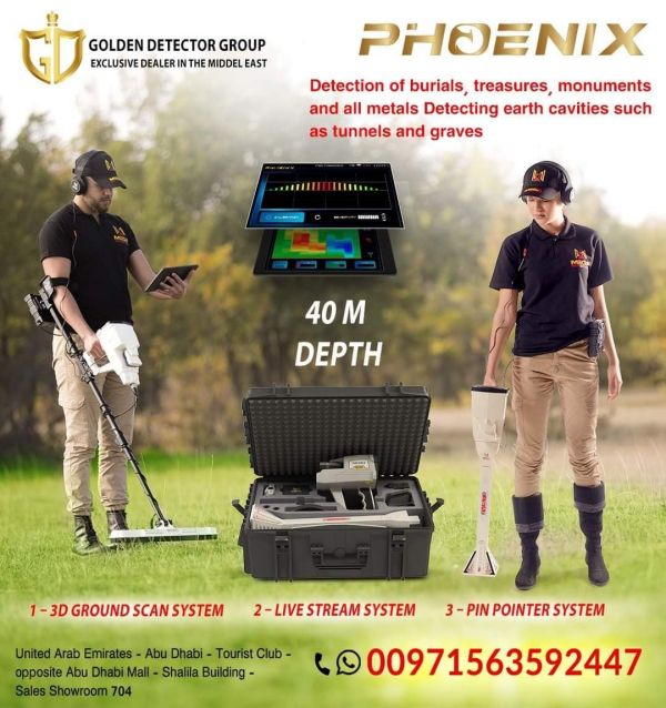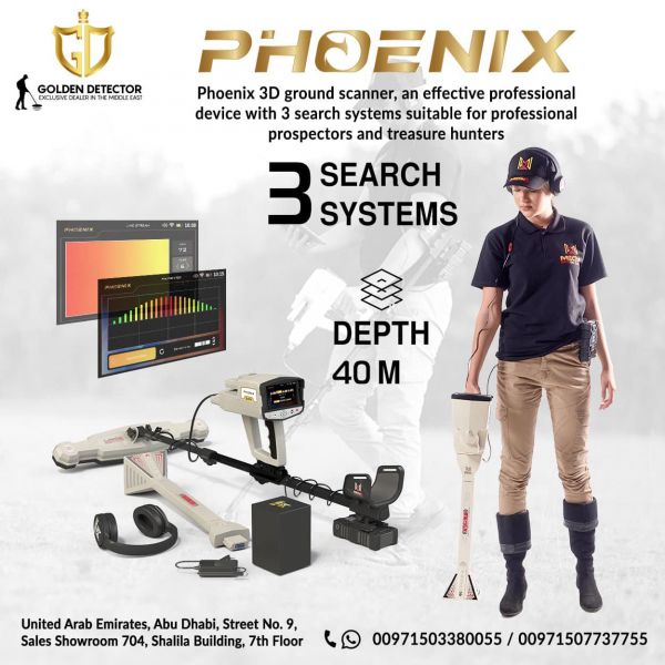 - Phoenix is a new 3D ground scanner & metal detector device from the German company Mega Detection, it is the latest release of the company. Phoenix includes a completely new ground scan technology via the M.G.S a multi-ground scanner probe and the V.S.T vertical high-signal transceiver probe, which provide professional treasure hunters the tools to scan the ground to great depths accurately and quickly with a visual representation of the scanning results on the device screen or on any supported tablet via the Multi Visual Analyzer app. Phoenix metal detector is a 3D ground scanner with a completely new ground scanning technology that ensures faster and more accurate results in finding and detecting of ancient treasures and burials at very great depths. - 3 Search systems with different detection technologies that fit all needs of professional treasure hunters including • Ground Scan • Live Stream • Pin pointer - 2D Visualization of scan results for all systems on the device screen - 3D